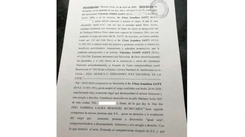 De esta forma legal, prolija y con papeles en mano, Ulises ya podrá cuidar de Valentino como el único responsable directo. “En medio de la cuarentena, fue una buena noticia. Tardó un montón en salir la resolución. Y, en el medio, yo tuve que pasar por todo tipo de entrevistas con psicólogos y asistentes sociales. Pero estaba claro que mi sobrino quería estar conmigo y yo con él. Mostré cuál era mi trabajo, dejé que vieran mi casa, saqué el certificado que demuestra que no tengo antecedentes penales…Fue largo el camino. Así que, cuando me dijeron que fuera a buscar el papel. no lo podía creer“, aseguró Jaitt.