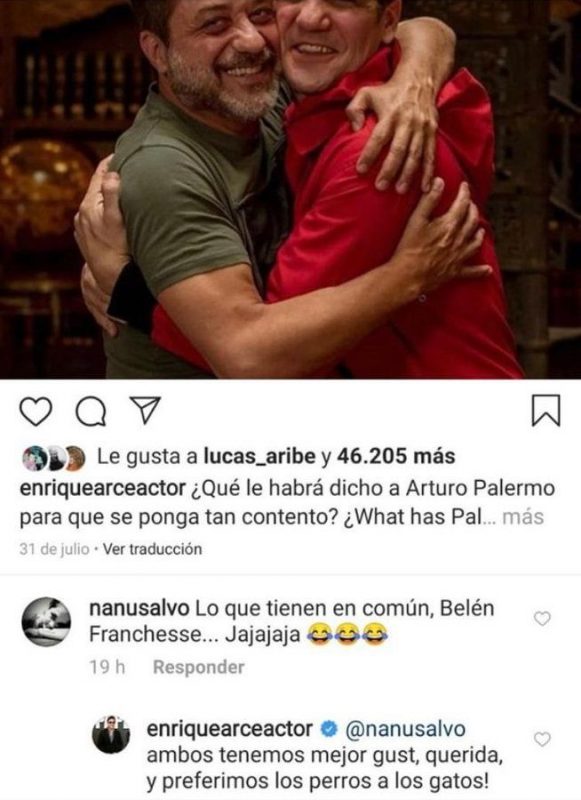 Enrique Arce, quien interpreta a Arturito en “La Casa de Papel”, tildó de “gato” a Belén Francese en su cuenta de Instagram.