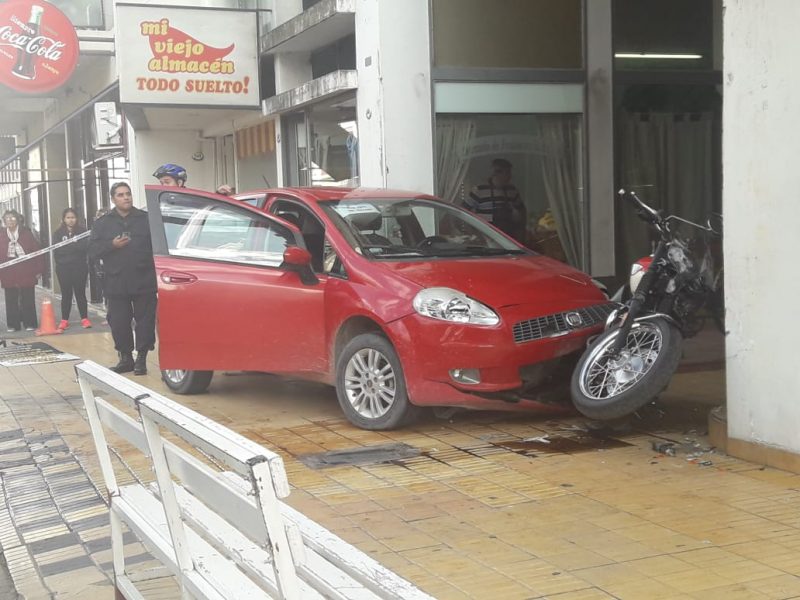 Un hombre hizo una mala maniobra y se subió a la vereda en O’Higgins al 300, provocando heridas a un transeúnte y daños en una moto y en la vidriera de un comercio.