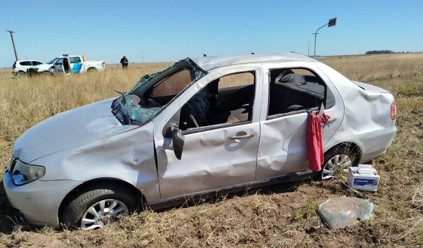 El vuelco de un auto se produjo esta mañana, alrededor de las 10, en el kilómetro 606 de la ruta 6, cerca de Coronel Dorrego.