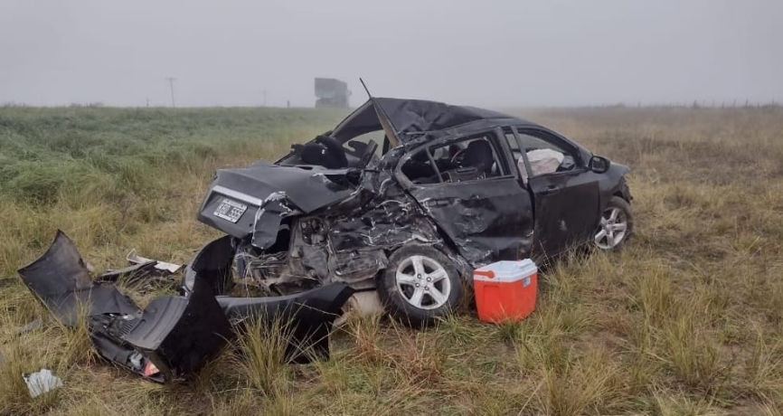 El hecho se produjo cuando un automóvil Honda City que se dirigía de Tornquist a Pigüé rozó un camión e hizo un trompo en el carril contrario.