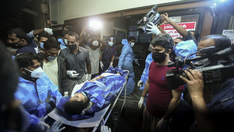 Desde AP informaron que el avión “se deslizó de la pista mientras aterrizaba bajo una fuerte lluvia en el sur de India, y algunas personas heridas fueron hospitalizadas”.