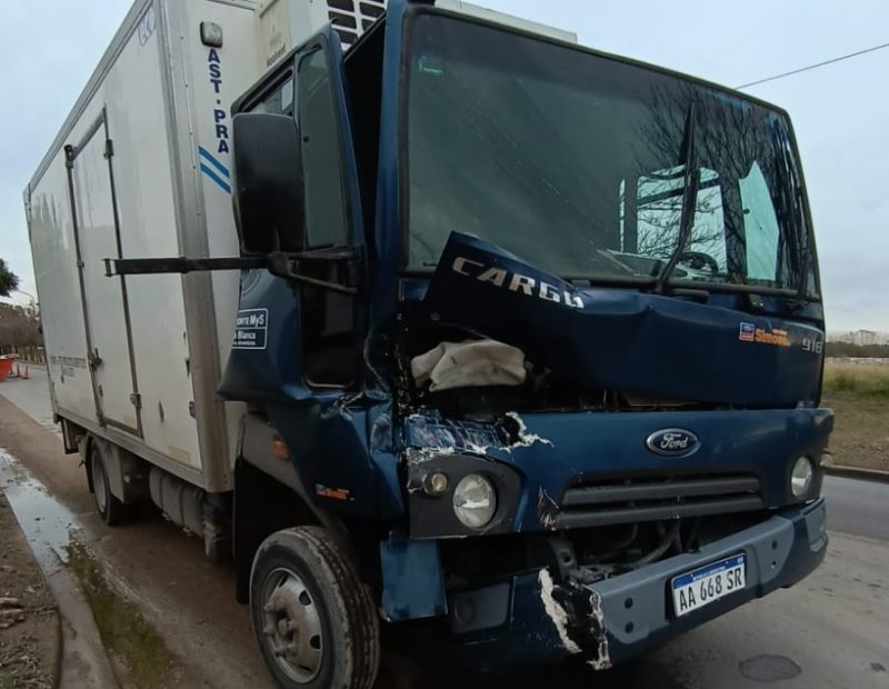 Un incidente de tránsito se produjo esta tarde en Pedro Pico 1600 cuando un camión de carga colisionó contra un contenedor de la empresa AyF luego de una mala maniobra ante un auto que circulaba de frente, sobre la misma arteria.