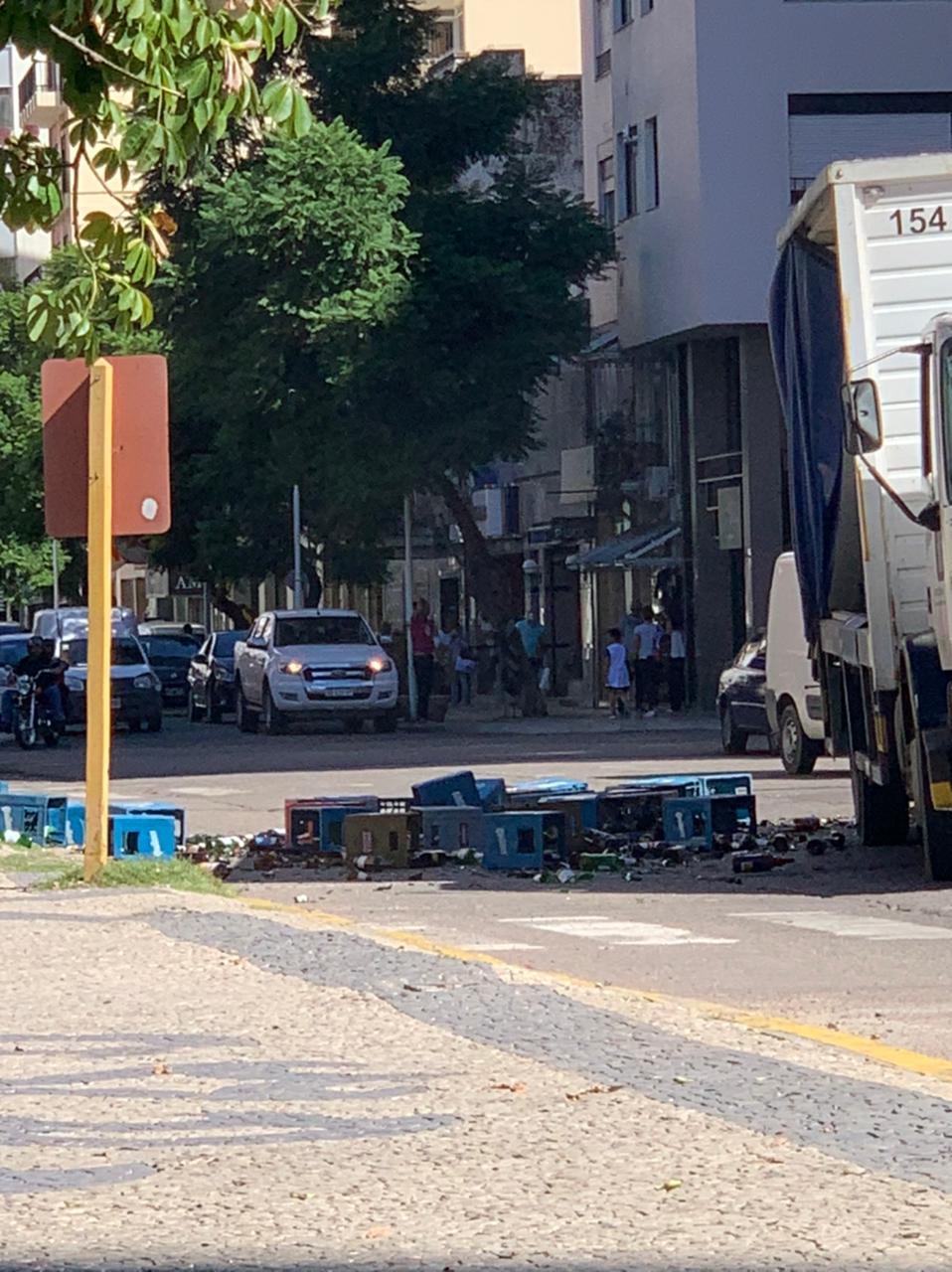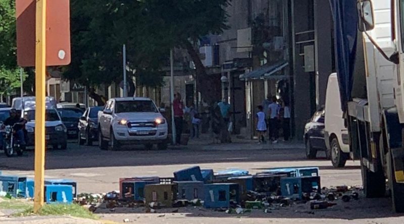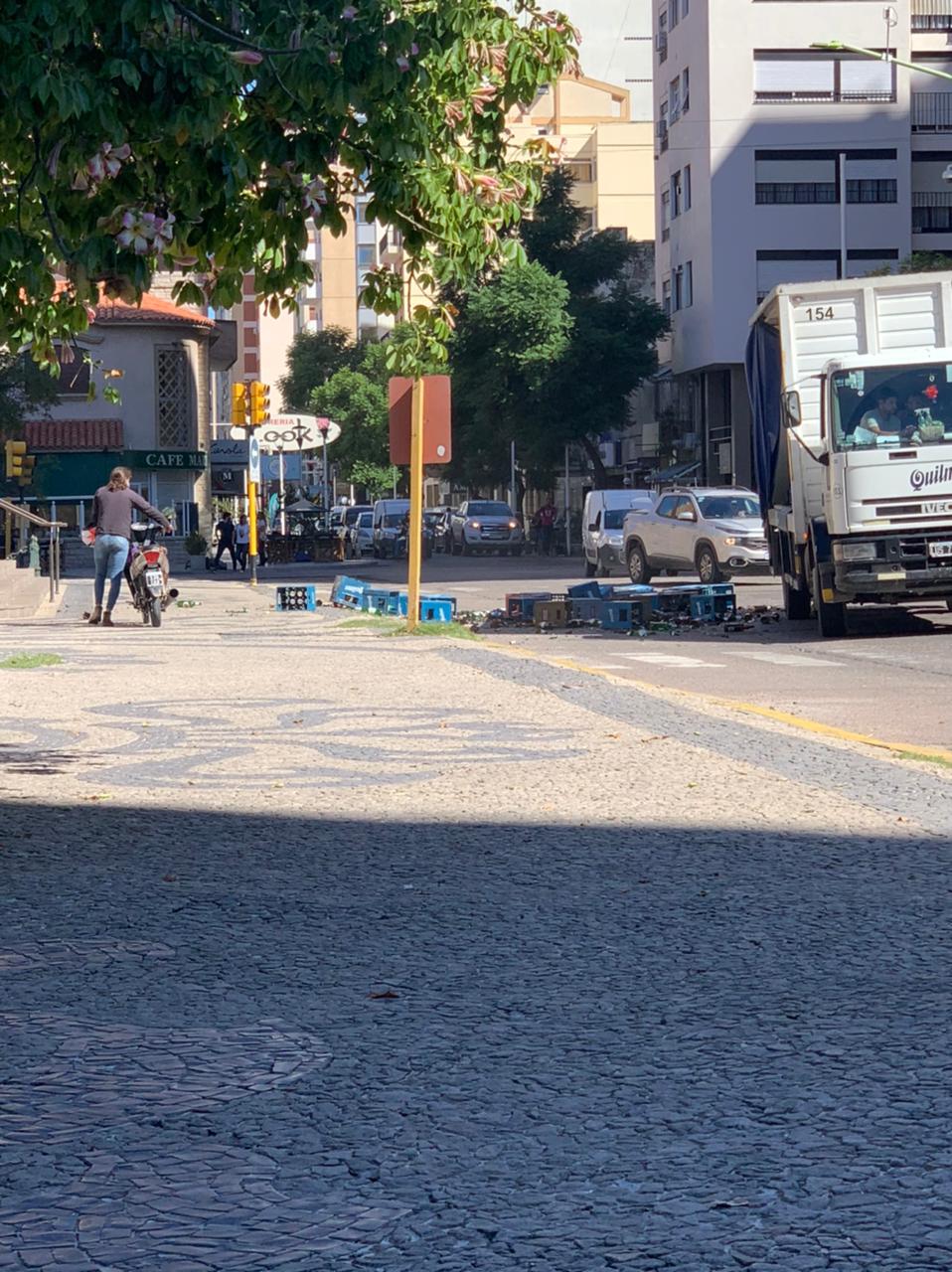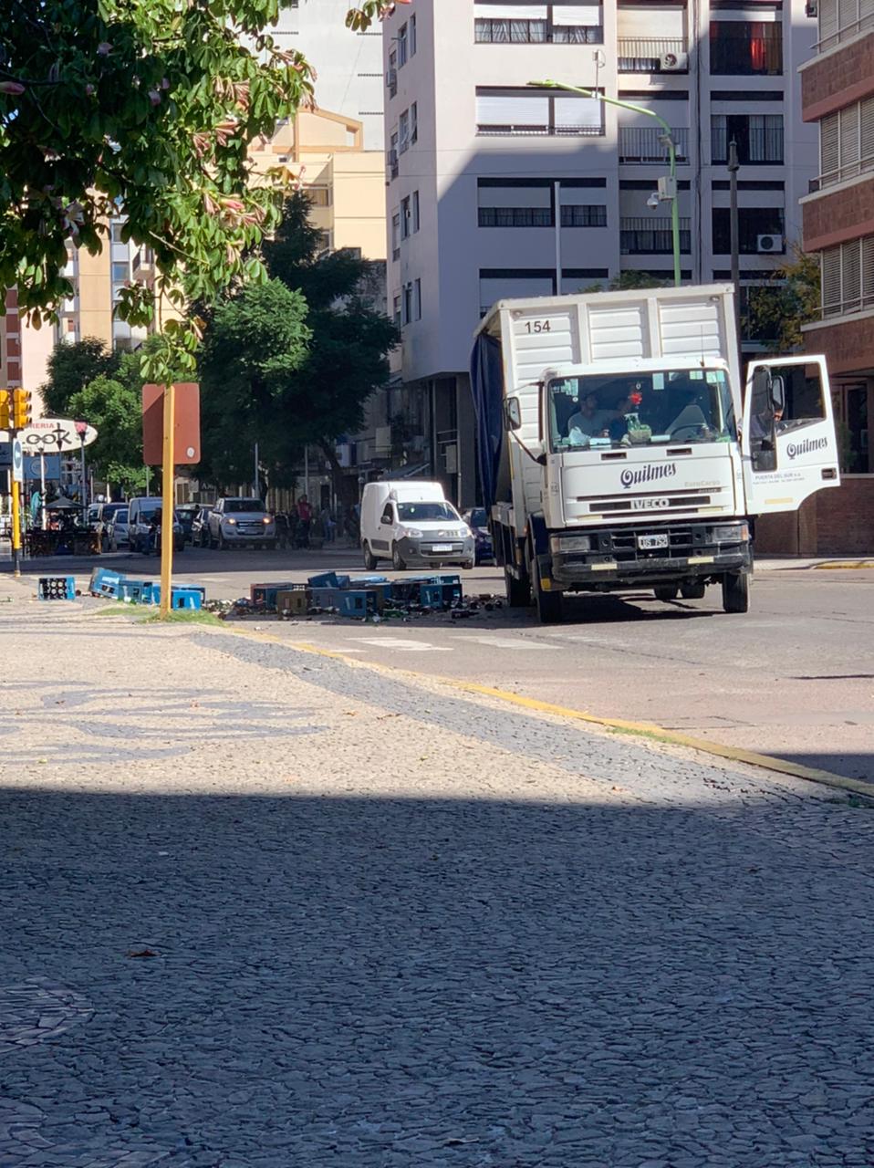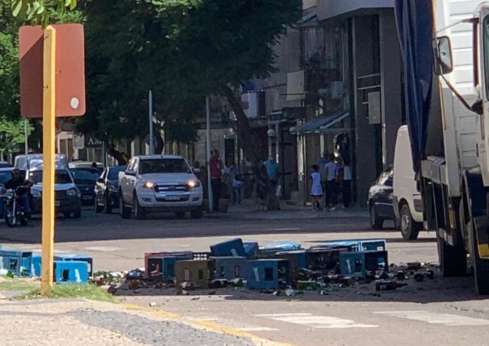 Un camión que transitaba este viernes por el centro de la ciudad perdió parte de su carga, por lo que debió actuar Defensa Civil para limpiar los desechos. El hecho se registró en horas del mediodía frente al Teatro Municipal.