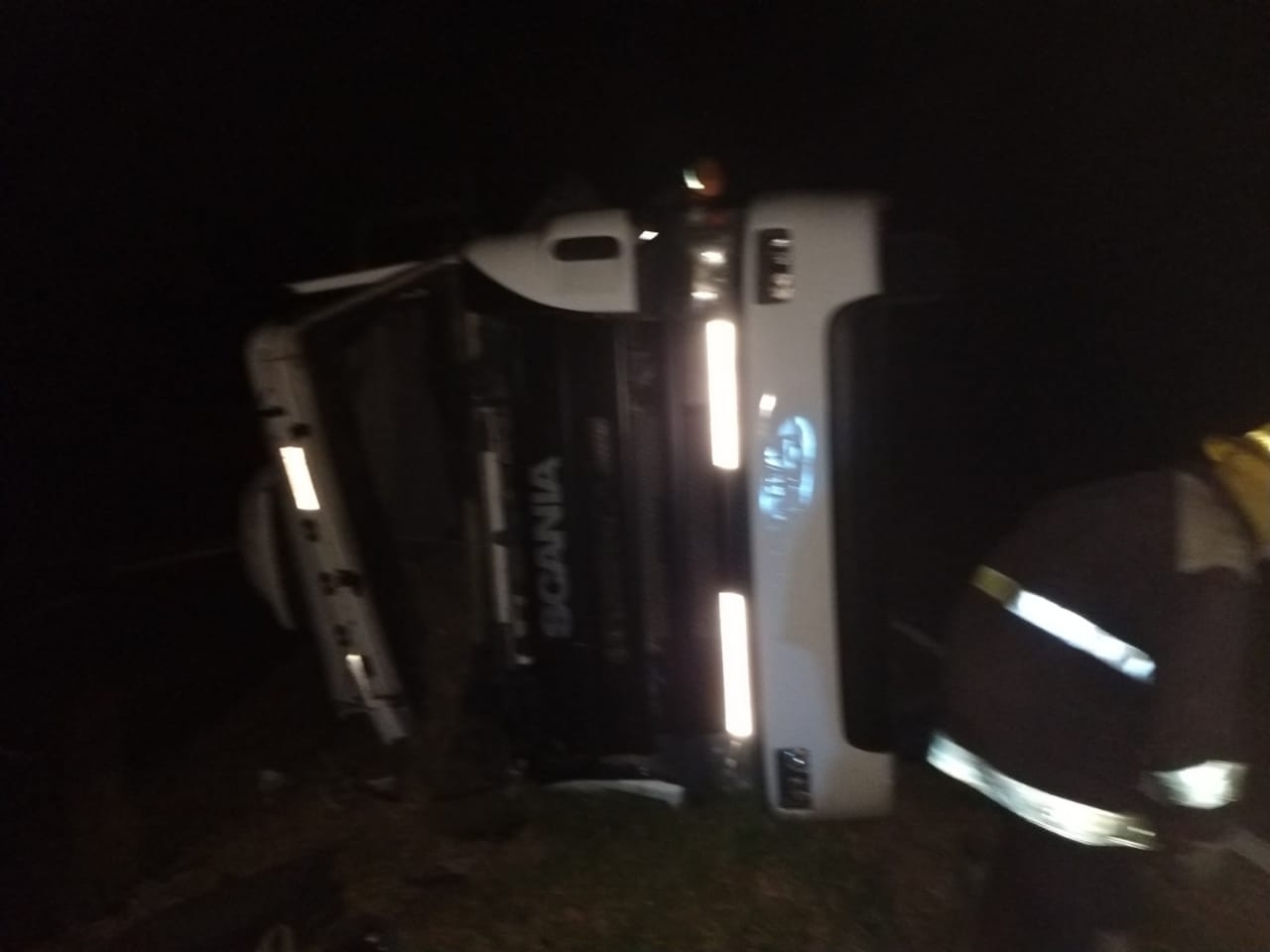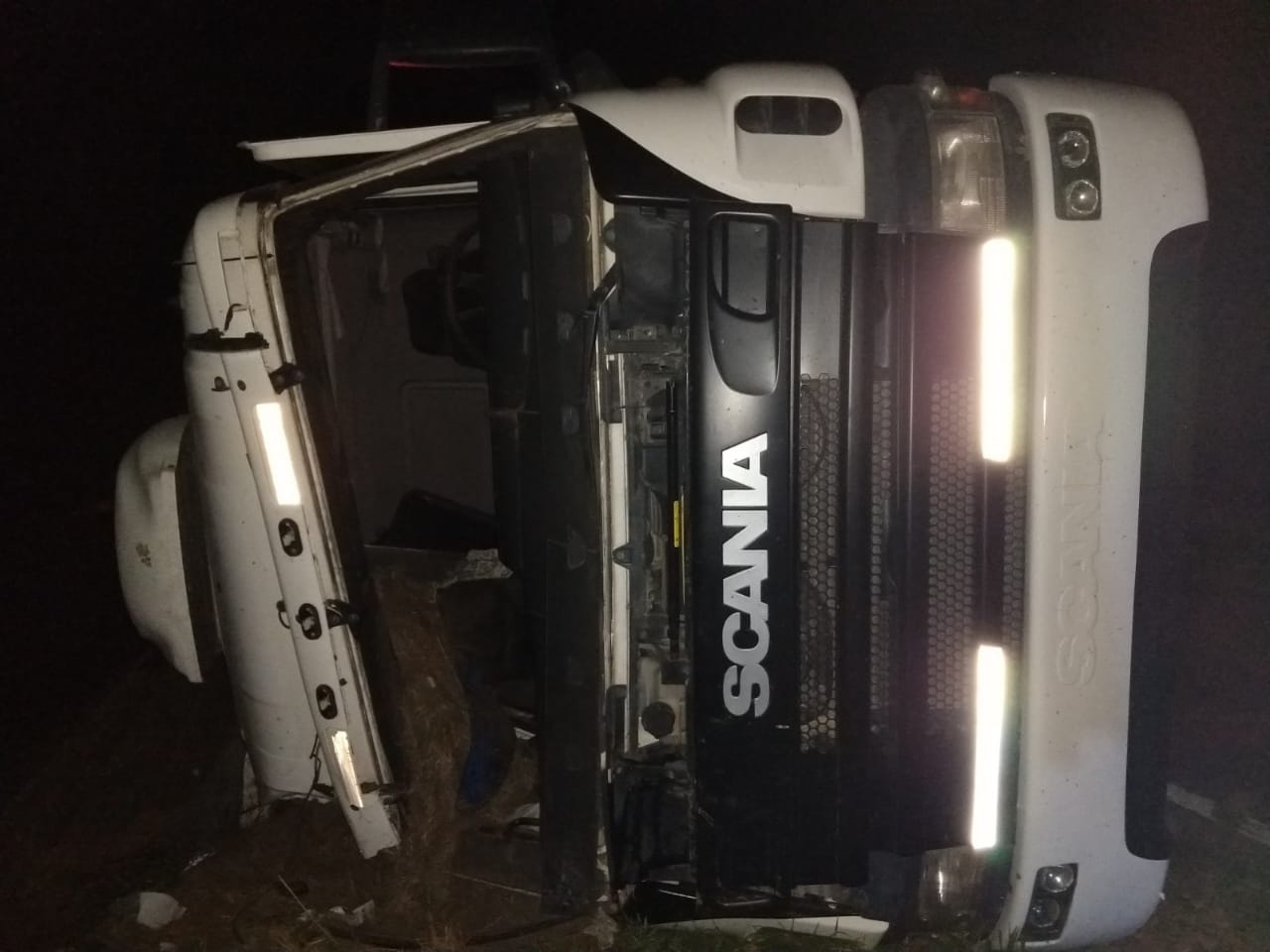 Un camión volcó el martes a la noche en el kilómetro 39 de la ruta nacional 33.