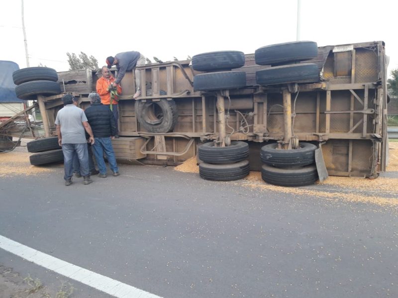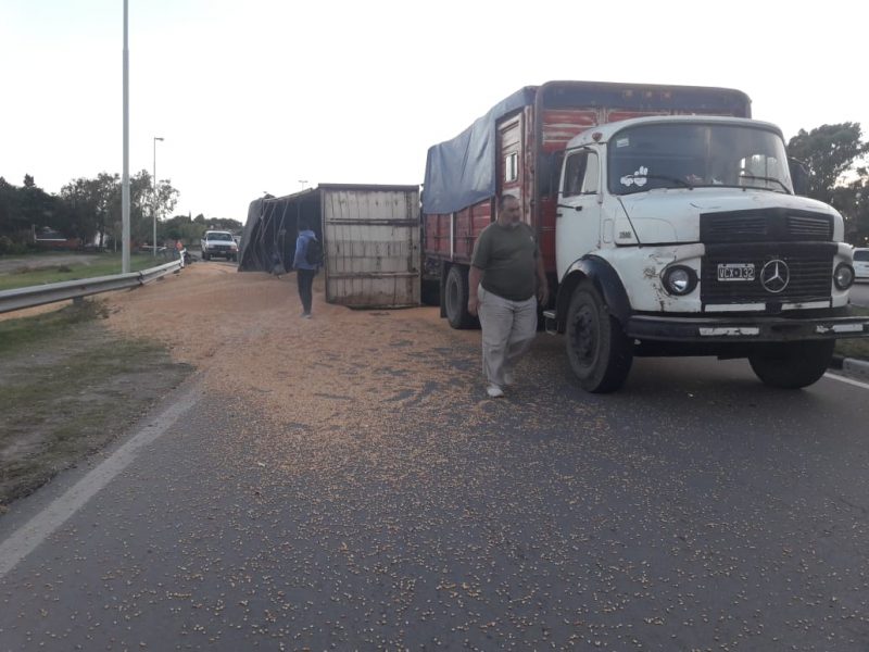 El vehículo llevaba maíz, que quedó esparcido sobre la cinta asfáltica.