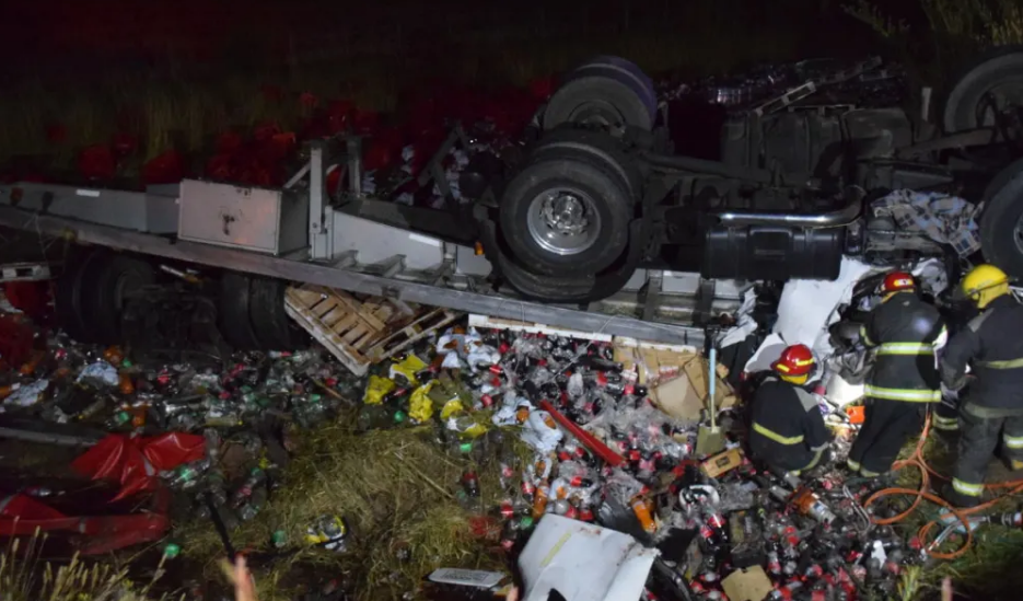 Según se informó por circunstancias que se tratan de establecer, un camión con semirremolque con carga de Coca-Cola que se dirigía de Laprida en dirección a Olavarría, despistó, volcó y quedó sobre la banquina contraria.