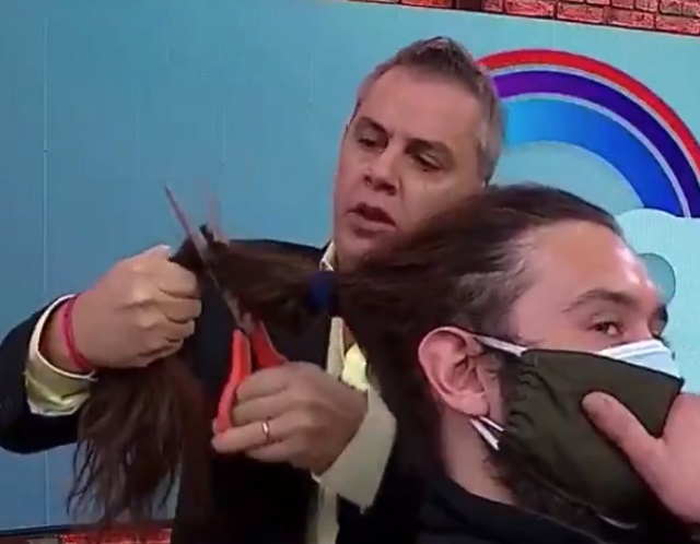 Un conductor chileno generó una enorme polémica al cortarle el pelo en vivo a un camarógrafo por “llevar el coronavirus pegado ahí”.