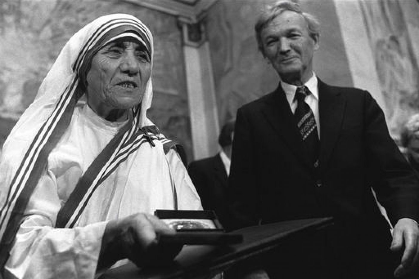 1979: La Madre Teresa de Calcuta recibe el Premio Nobel de la Paz.