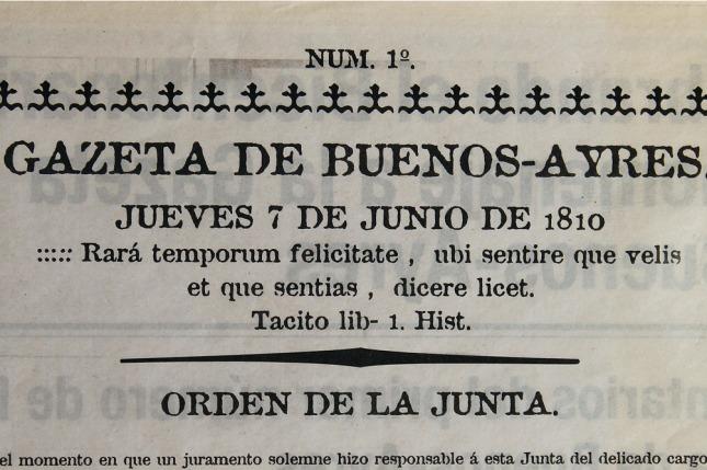 1810: Aparece en Buenos Aires la Gazeta de Buenos Ayres, primer órgano de prensa de las ideas patrióticas. En su redacción participaron Juan José Castelli, Mariano Moreno, Manuel Belgrano, Manuel Alberti, Pedro Agrelo y Bernardo de Monteagudo.