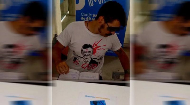 Un empleado municipal atendió al público con una remera de Macri ensangrentado