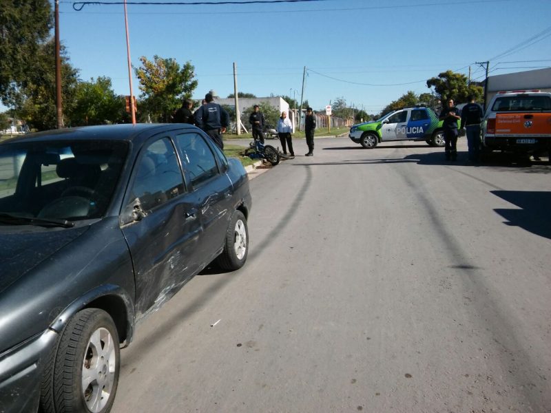 Un joven motociclista fue hospitalizado este domingo luego de chocar con un auto en la intersección de la avenida Colón y Nueva Provincia.