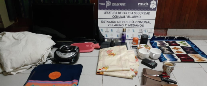 Carpintino se había ausentado de su hogar el día 23, y al regresar, durante la jornada de ayer, se encontró con que la puerta de ingreso había sido forzada, y el faltante de un televisor LCD de 32 pulgadas, una tostadora, una licuadora, un radiograbador, una olla marca Essen, un acolchado, frazadas, tres botellas de aceite, papel higiénico, una botella de licor, un mantel, un camino de tela, adornos y cubiertos, entre otros.