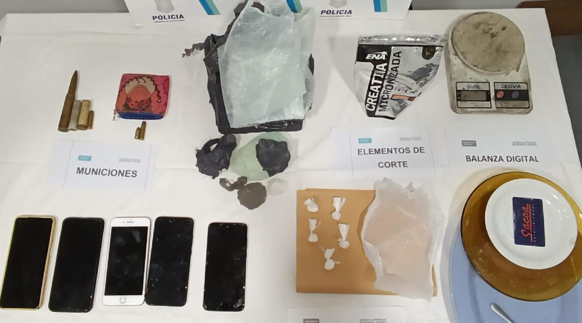 Además, en el lugar los efectivos encontraron cocaína fraccionada y procedieron a secuestrar los teléfonos celulares de las personas que se encontraban en la vivienda, los cuales serán peritados en busca de elementos de interés para la investigación.