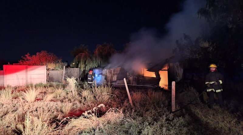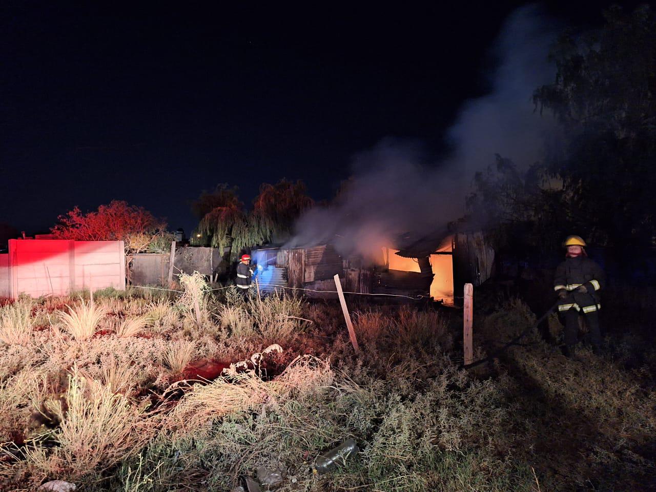 Una vivienda precaria ubicada en Pampa Central al 4000 se incendió anoche, informaron fuentes oficiales.