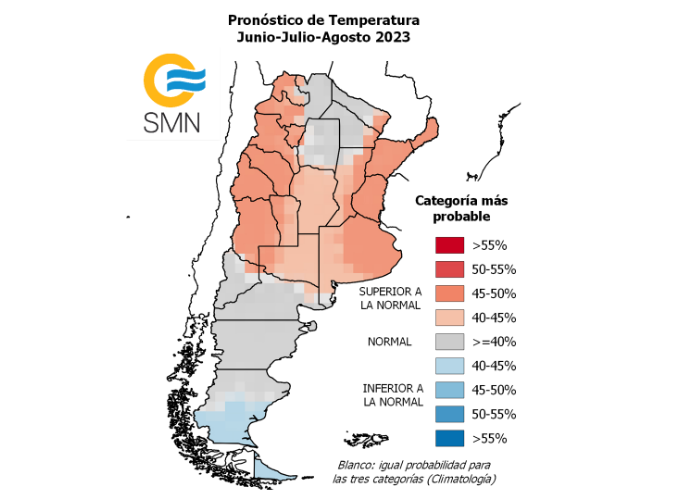 El SMN advirtió, sin embargo, que lo pronosticado puede tener menos probabilidad “cuando actúan forzantes atmosféricos como El Niño o La Niña y la circulación planetaria cambia”.