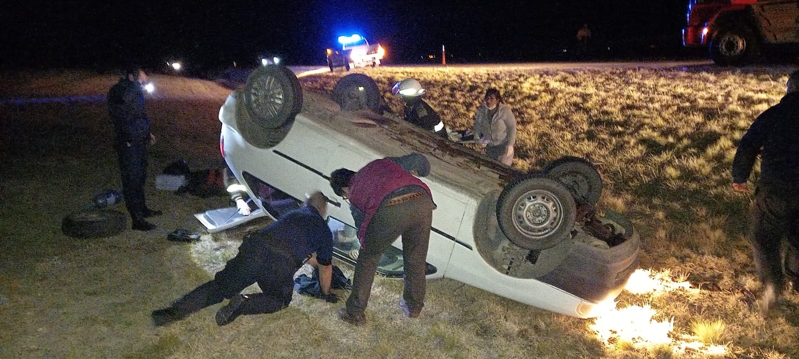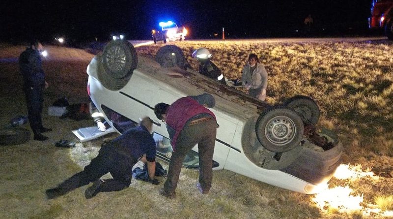 El vuelco de un auto se registró el martes a la noche en el acceso a Tornquist, en cercanías de la Asociación Rural.