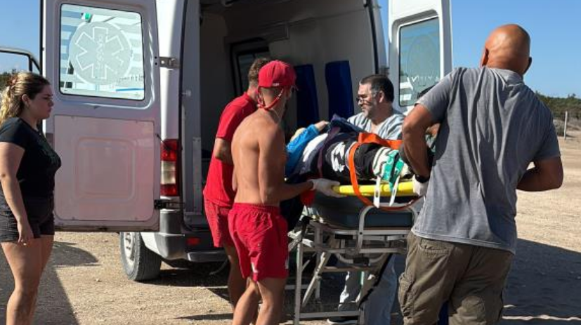 Los guardavidas inmovilizaron al adolescente y lo trasladaron en camilla hasta la ambulancia que esperaba en la bajada nueva. El joven manifestó sentir mucho dolor durante el rescate.