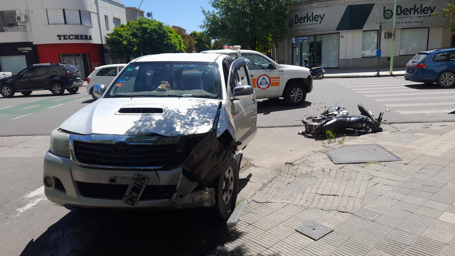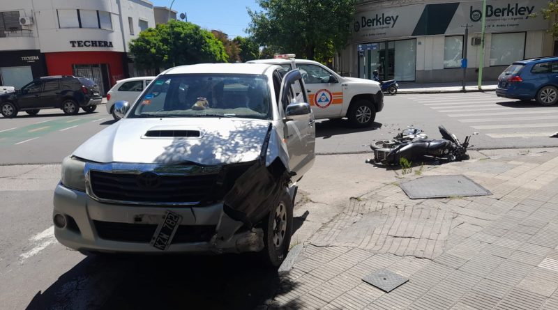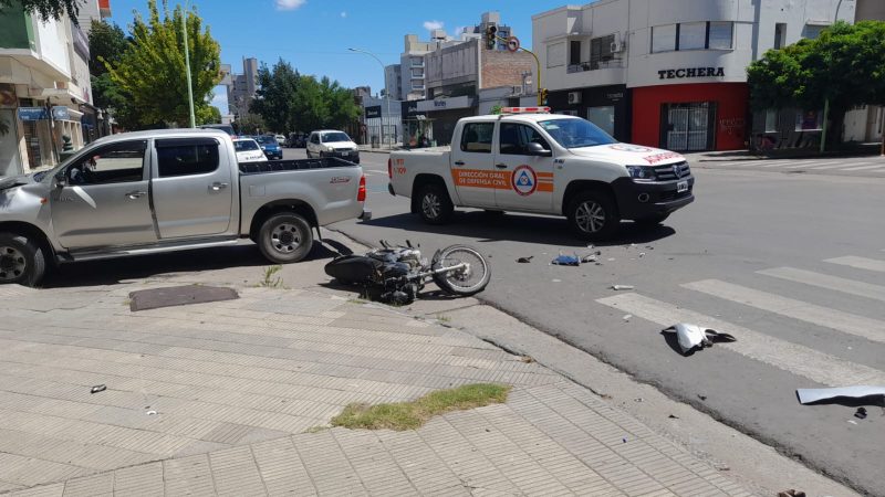 Una moto y una camioneta colisionaron este martes, alrededor de las 14, en avenida Colón y Darregueira, informaron fuentes oficiales.
