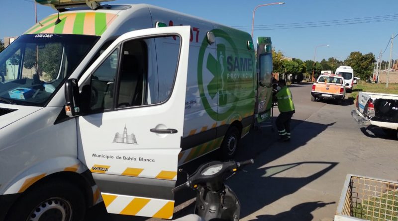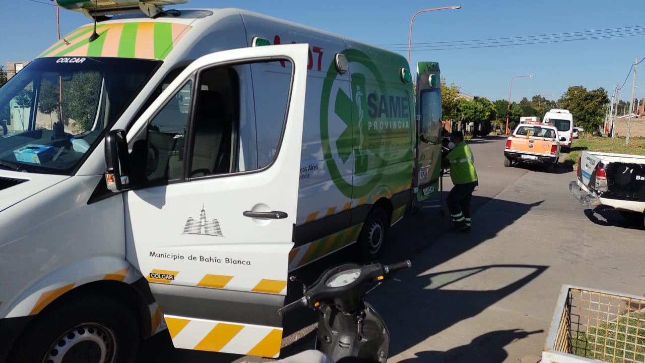 Producto del choque, un hombre que viajaba en el rodado menor sufrió un fuerte trauma de tobillo y fue trasladado a un hospital por una ambulancia del servicio Siempre.