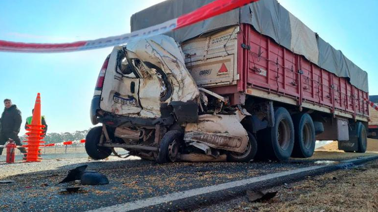 El utilitario terminó incrustado en el semirremolque del camión y a su vez recibió el impacto del colectivo que circulaba por detrás. El micro trasladaba un contingente de turistas desde La Pampa hacia Salta.
