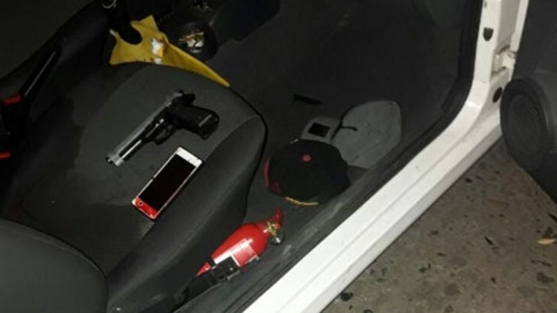 Sobre el asiento del conductor, la policía secuestró una pistola de juguete, con la cual se presume que los delincuentes amenazaron al oficial de la PSA.