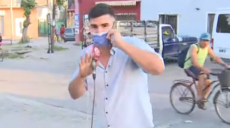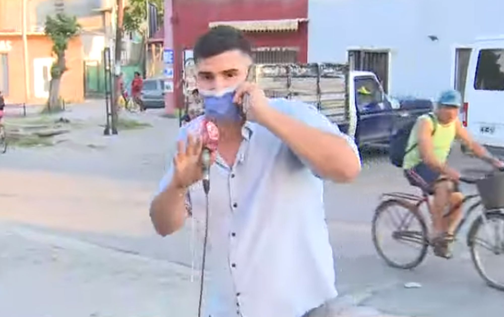 En ese instante, el periodista entregó el micrófono al camarógrafo y salió corriendo rumbo a su domicilio.