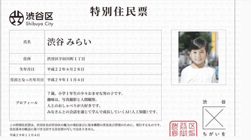 Un robot virtual, con la imagen de un niño de siete años, obtuvo el estatuto oficial de residente de un barrio céntrico de Tokio.