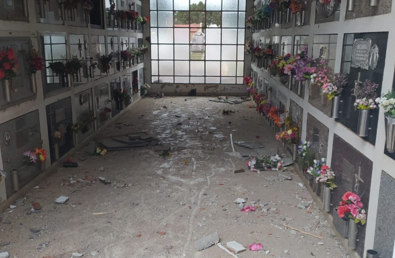 Un rayo y fuertes ráfagas de viento provocaron destrozos en varios nichos ubicados en el cementerio de Tornquist.