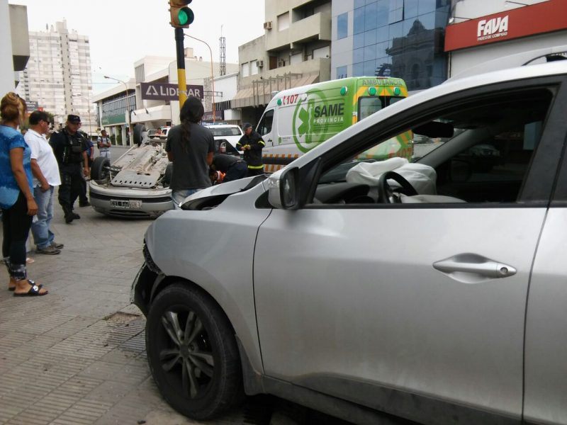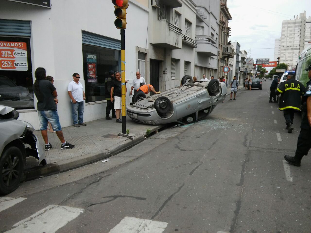 Un remís chocó con una camioneta en Chiclana y Villarino y volcó.