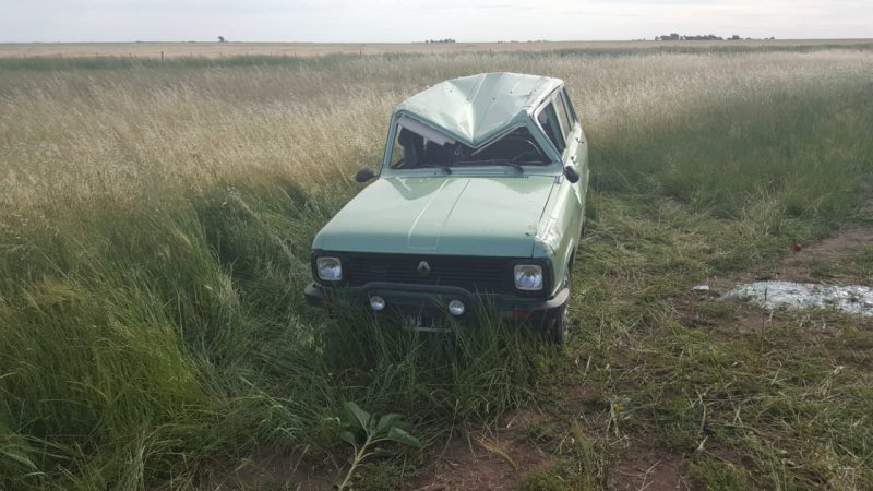 Un reventón de neumático habría causado el vuelco de un auto en la ruta 3