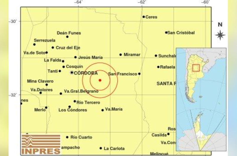 Según lo informado por el Instituto Nacional de Prevención Sísmica (INPRES) el sismo se produjo a las 06:42:54 de hoy, a unos 87 kilómetros al este de Córdoba.