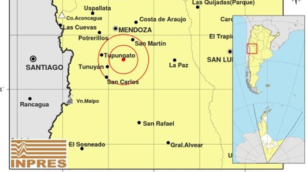 El temblor se originó a las 9:12, con epicentro a 66 kilómetros al sur de Mendoza a una profundidad de 10 kilómetros, según información preliminar y sujeta a revisión del Instituto Nacional de Prevención Sísmica (Inpres).
