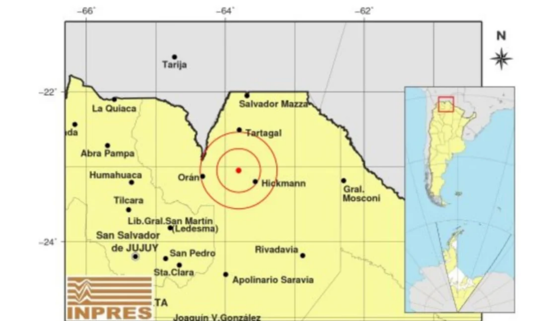 Según el informe preliminar del Instituto Nacional de Prevención Sísmica (INPRES), el movimiento telúrico ocurrió exactamente a las 22:53:41, con una profundidad de 30 kilómetros y un epicentro localizado 30 kilómetros al noroeste de Hickmann, 53 kilómetros al este de Orán y 56 kilómetros al sur de Tartagal.