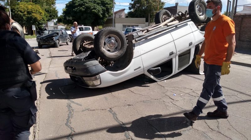 Una camioneta volcó este viernes luego de chocar con un auto en la esquina de Eduardo González y Rosario.