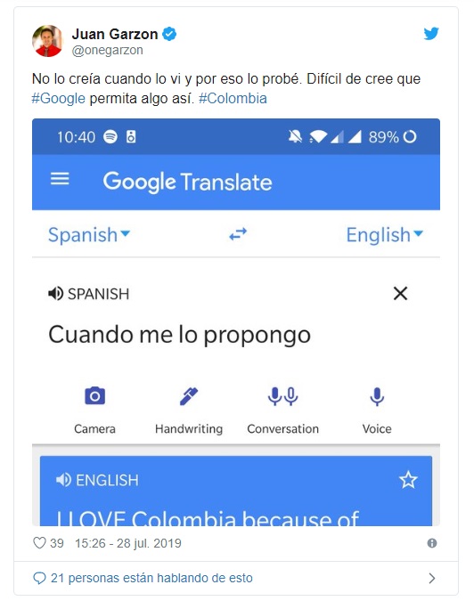 Una mala respuesta del traductor de Google indignó a los colombianos