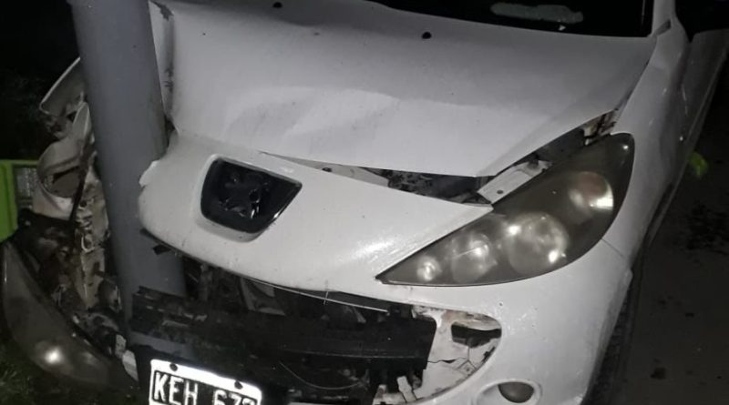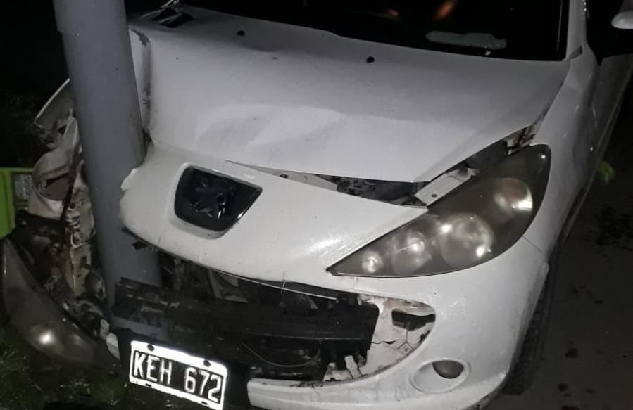 Una mujer chocó su auto contra una columna de alumbrado