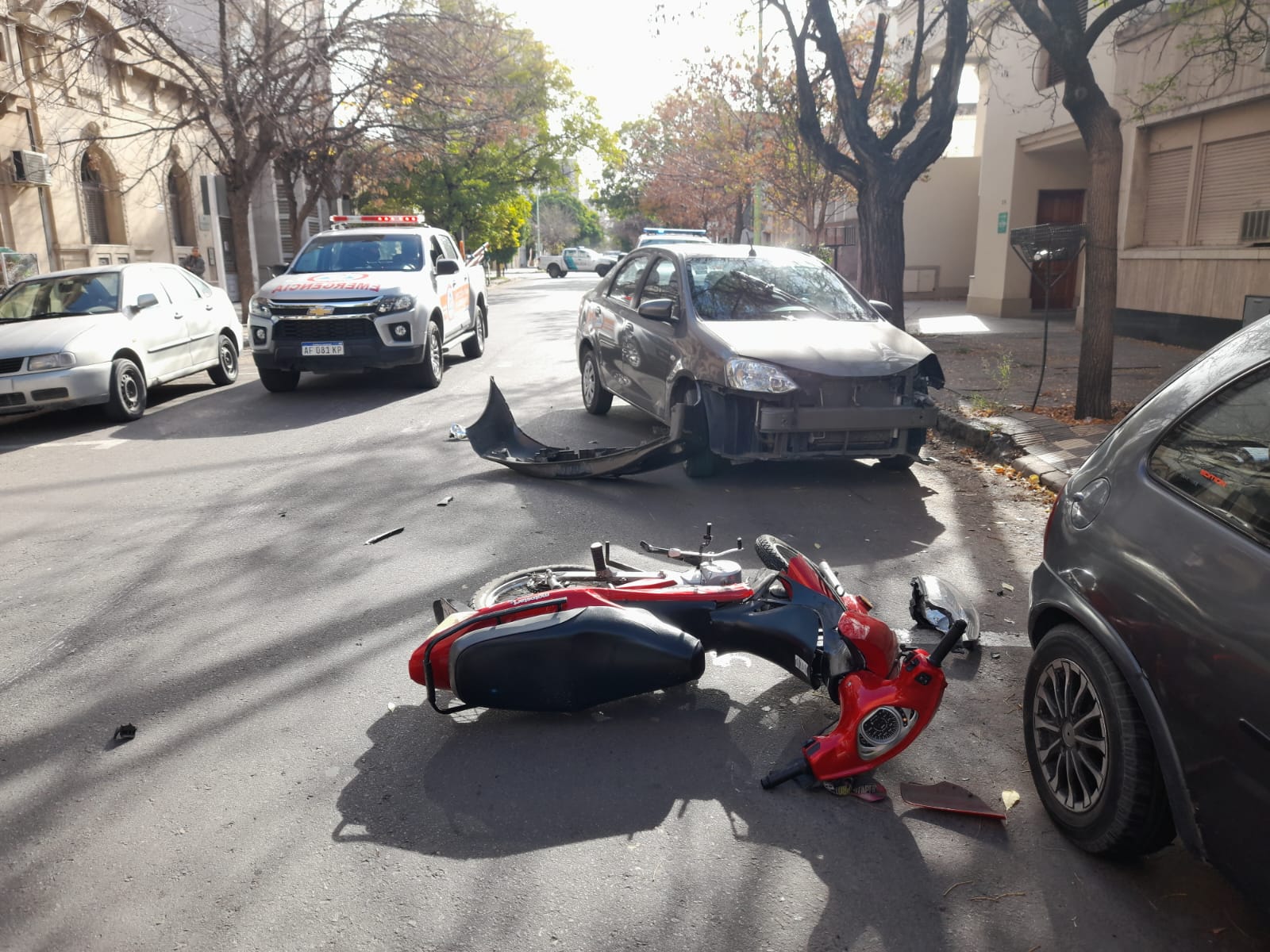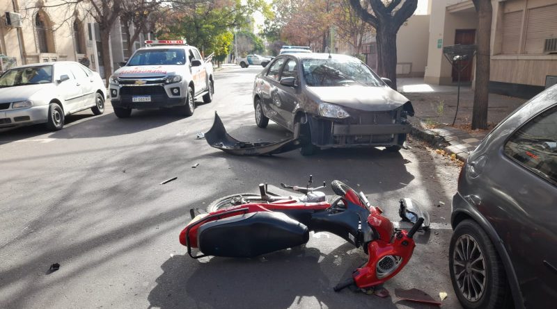 Un incidente de tránsito se produjo esta tarde en Güemes al 300 cuando una moto Corven Mirage conducida por una mujer de 27 años chocó con un auto Toyota Etios que estaba al mando de una mujer de 71.