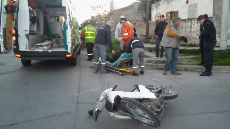 Una mujer sufrió heridas en un choque entre un auto y una moto