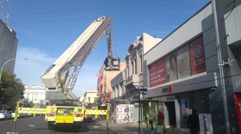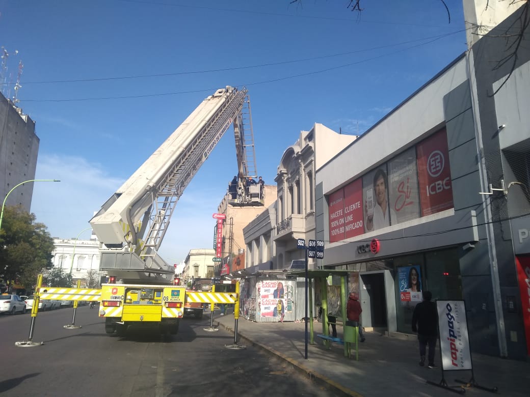 Los bomberos del cuartel Central utilizaron una hidrogrúa para hallar un celular que arrojó un hombre luego de robarlo.