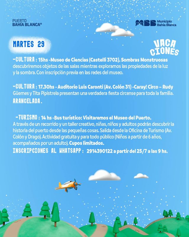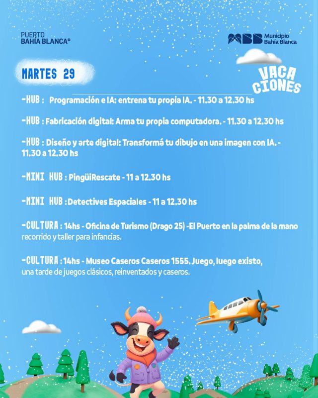 La grilla con cada propuesta libre o gratuita se encuentra disponible en https://www.bahia.gob.ar/vacacionesdeinvierno2025/