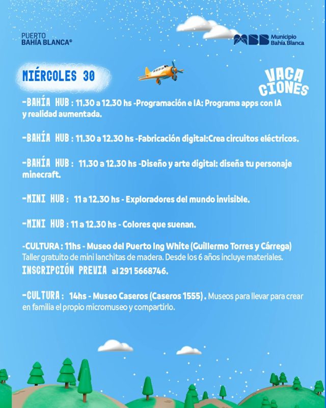 La grilla con cada propuesta libre o gratuita se encuentra disponible en https://www.bahia.gob.ar/vacacionesdeinvierno2025/