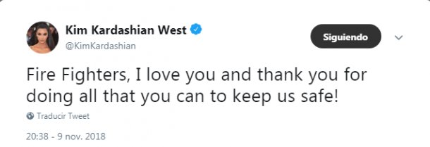 “Escuché que las llamas han golpeado nuestra propiedad en nuestra casa en Hidden Hills, pero ahora están más contenidas y se han detenido en este momento. No parece que esté empeorando. Solo rezo para que los vientos estén a nuestro favor. Dios es bueno. Rezo para que todos estén a salvo”, escribió Kim en Twitter y agradeció con otro mensaje el trabajo de los bomberos.