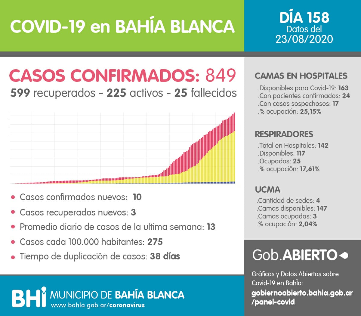 Diez casos nuevos, un deceso y tres recuperados por covid 19 se produjeron en Bahía Blanca en las últimas horas, informó el Comité de Contingencia.