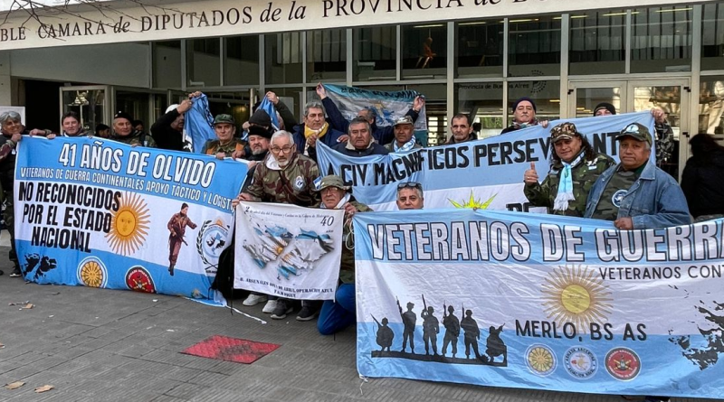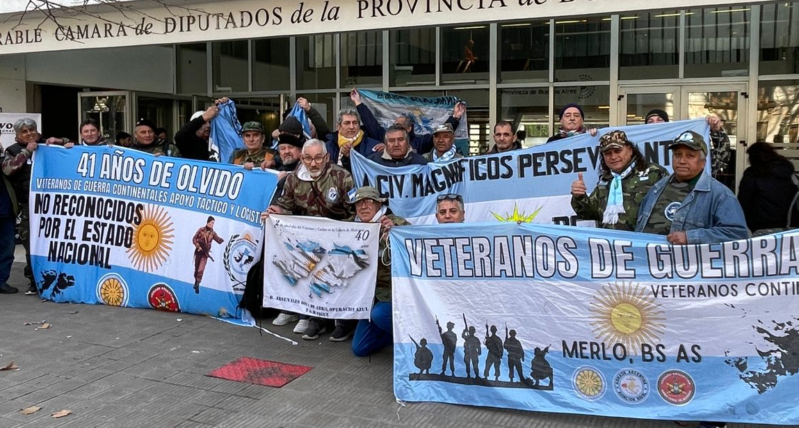 Veteranos continentales de la Guerra de Malvinas protestaron frente a las puertas de la Legislatura bonaerense ante la falta de tratamiento de un proyecto de ley de reconocimiento histórico, moral y económico por su participación en el conflicto bélico de 1982.