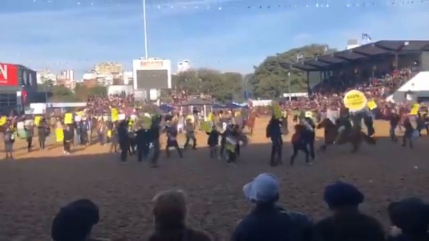 En La Rural de Palermo se vivió un incómodo momento el domingo 28 de julio cuando un grupo de activistas veganos irrumpió en la pista central del predio durante un concurso para protestar contra el consumo de animales. Algunos participantes los desalojaron de forma violenta a “caballazos” tras molestarse por su presencia.