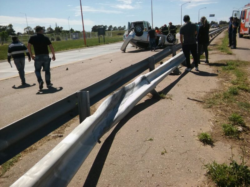 Luego del impacto, uno de los automóviles perdió el control y volcó sobre la mano contraria de la ruta, pasando sobre las vallas de contención.
