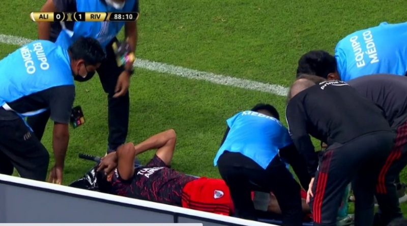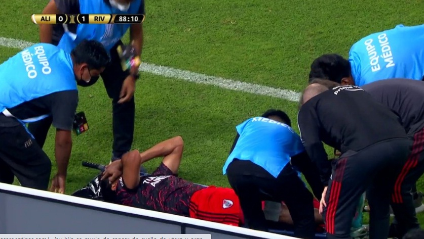 El defensor paraguayo Robert Rojas sufrió una dura lesión en el final del triunfo de River por 1 a 0 sobre Alianza Lima en Perú, en el debut en la Copa Libertadores, después de una fuerte e intencional entrada de Aldair Rodríguez.