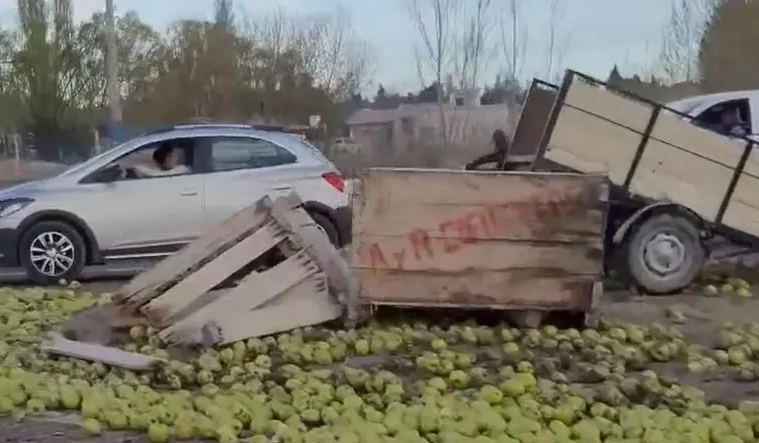 Tras el incidente, varios automovilistas y personas que circulaban por el sector se detuvieron y comenzaron a levantar las manzanas que quedaron esparcidas sobre la calzada.