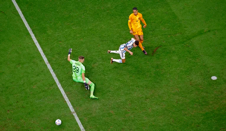 El lateral Nahuel Molina, a los 34m del primer tiempo, puso el 1 a 0 para Argentina sobre Países Bajos en el estadio Lusail, en partido de los cuartos de final del Mundial de Qatar 2022.